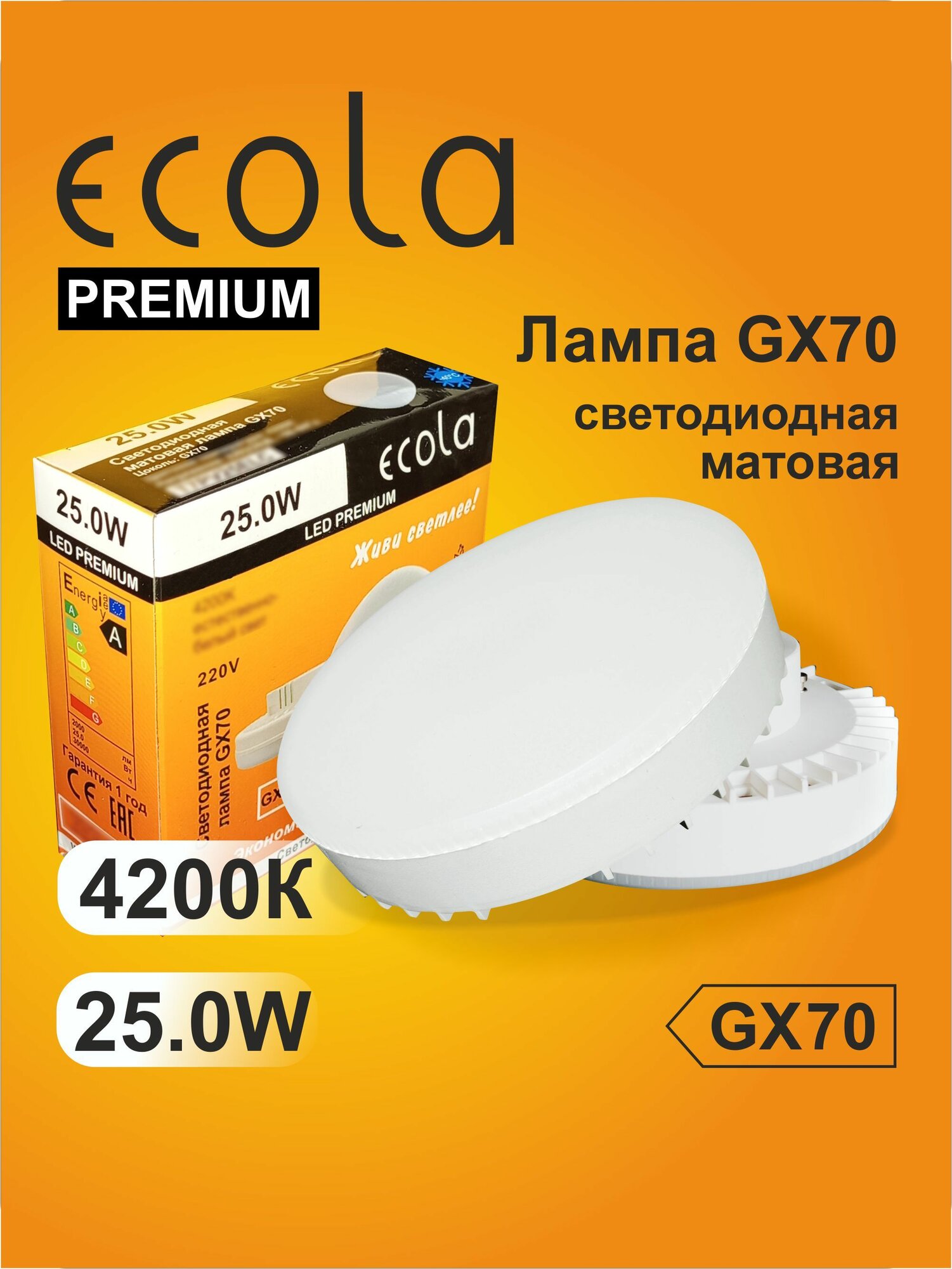 Сохранить1 шт. Лампа Экола GX70 LED Premium 25W Tablet Ecola 220V 4200K матовое стекло интересное: