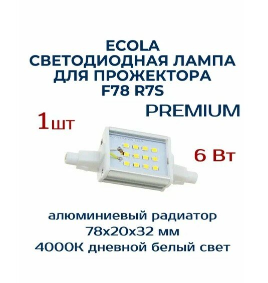(1 шт.) Светодиодная лампочка Ecola прожекторная F78 R7s 6W 4200K 4K 78x20x32 Premium алюм. радиатор J7PV60ELC Нейтральный белый. Цоколь R7s