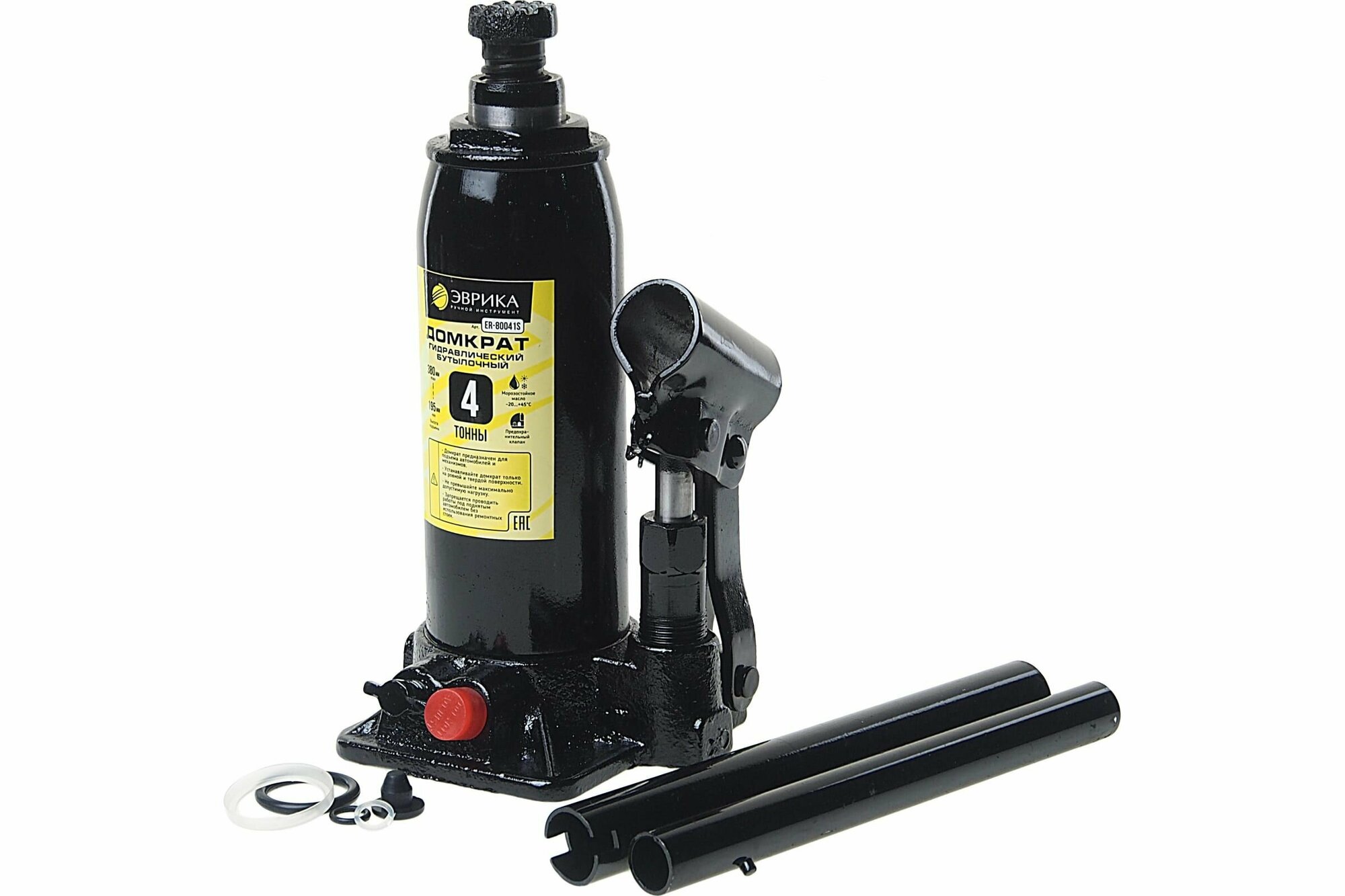 Домкрат гидравлический ER-80041S бутылочный с клапаном 4т, ремкомплект (выс. подъема 195-380мм) в к, эврика ER80041S (1 шт.)