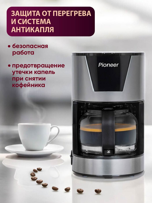 Кофеварка капельная Pioneer Cm051d серебристый .