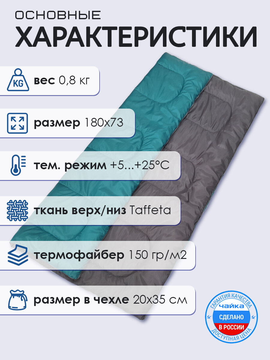 Спальный мешок Чайка СО150, туристический, кемпинговый, термофайбер, 180х73 см