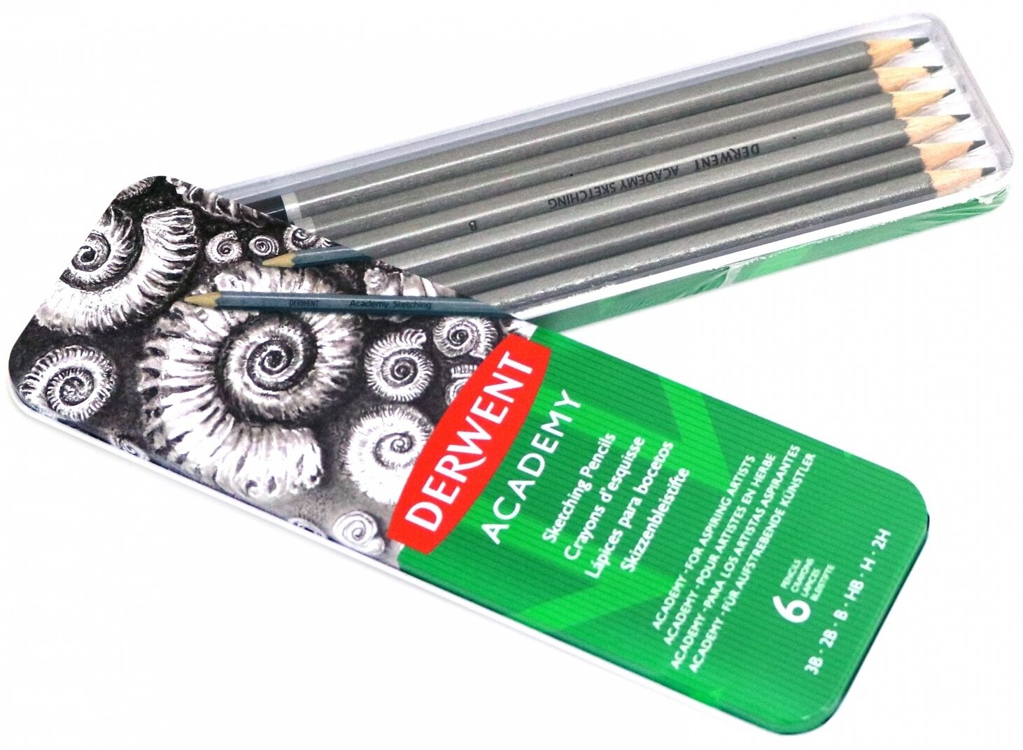 Купить Набор карандашей Derwent Academy Sketching Tin 6 шт 3B-2H, шестигранные в металлической коробке, художественные