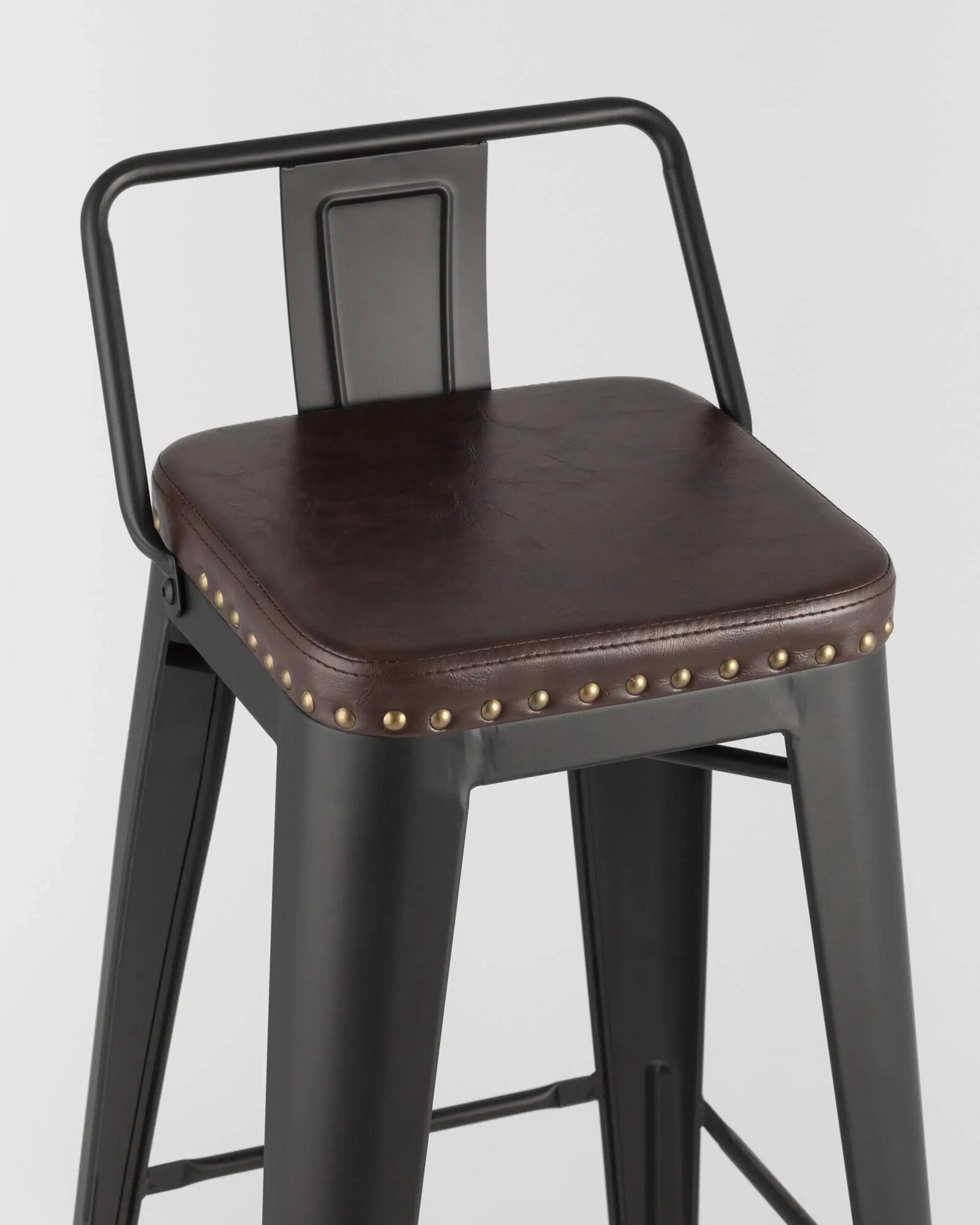 Стул барный Tolix SOFT STOOL GROUP черный; экокожа, металл; мягкое сиденье; без подлокотников