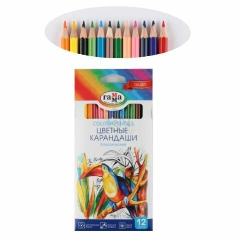 Карандаши цветные Гамма "Классические", 12 цветов, заточенные, шестигранные (050918_02)