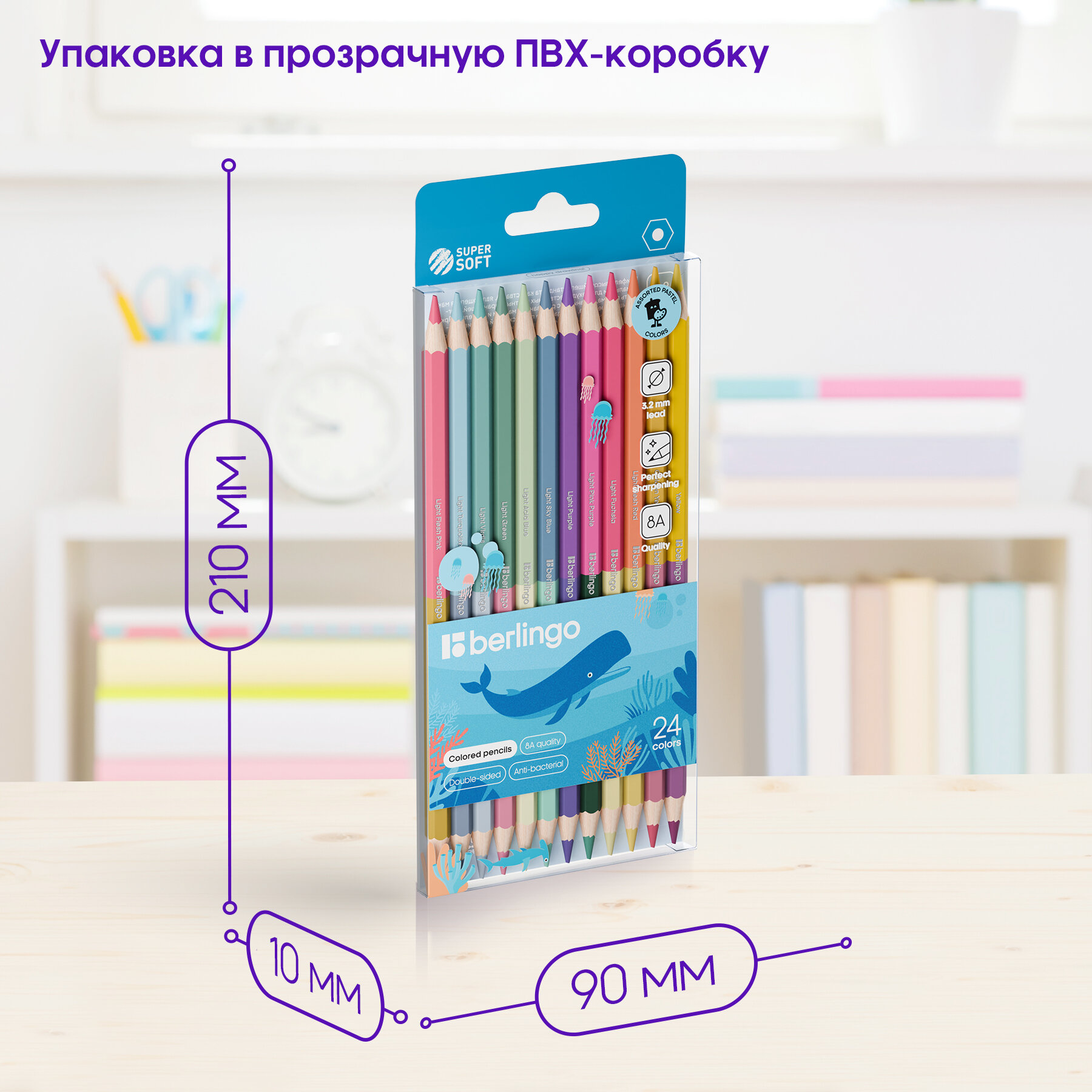 Карандаши цветные пастельные двусторонние Berlingo "SuperSoft. Pastel", 24цв., 12шт., заточен., европодвес