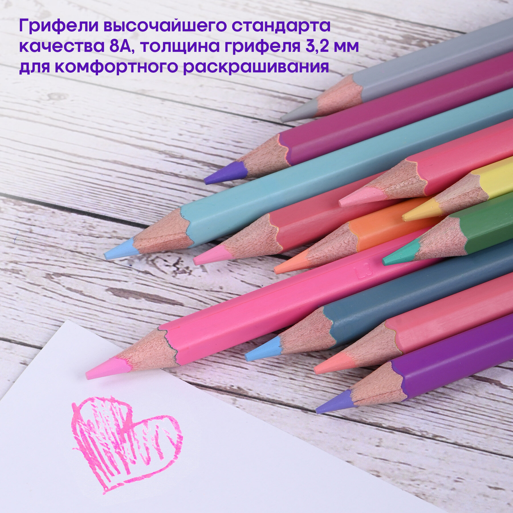 Цветные карандаши для школы 12 цветов, пастельные шестигранные / Набор цветных карандашей для рисования школьный Berlingo "SuperSoft. Pastel"