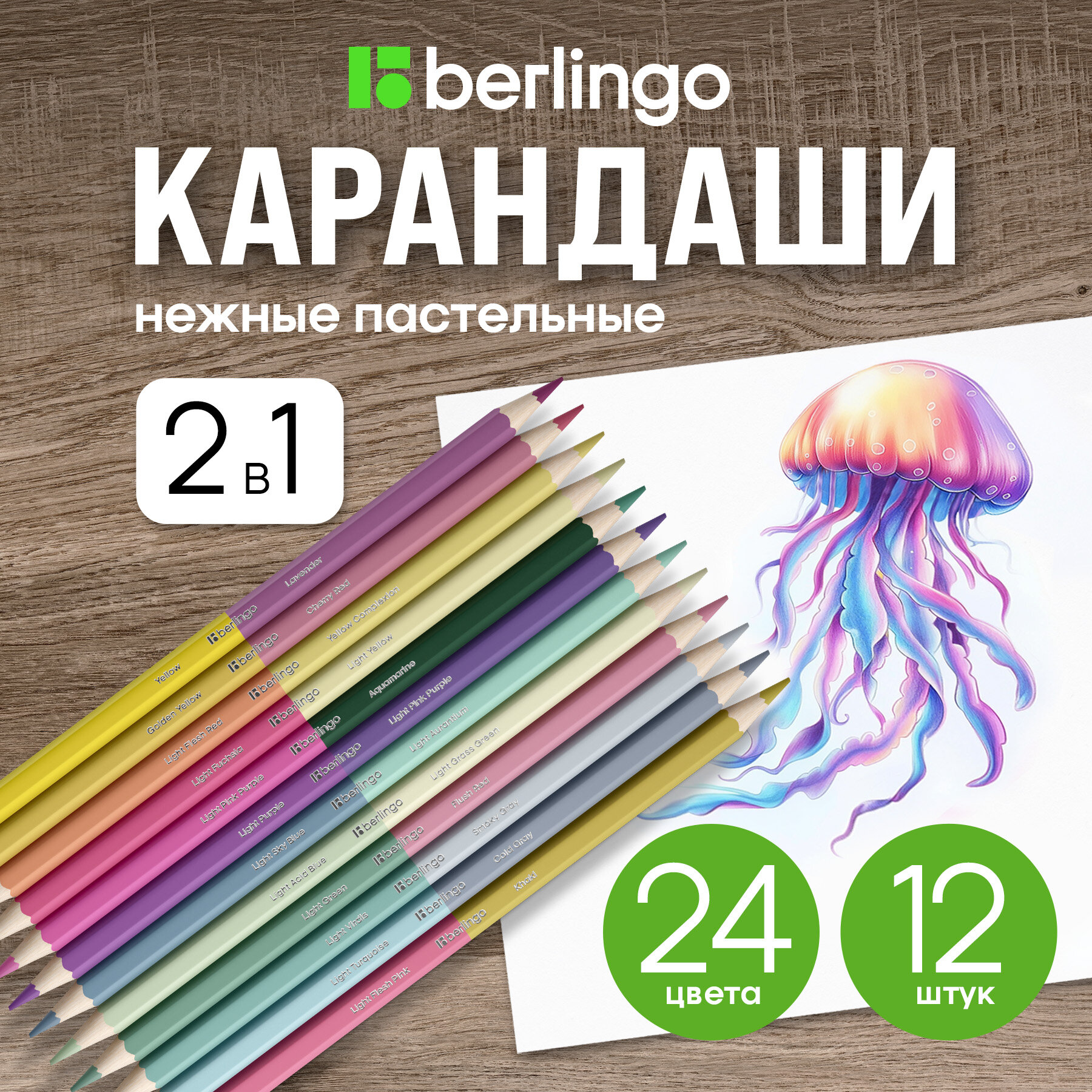 Купить Карандаши цветные пастельные двусторонние Berlingo "SuperSoft. Pastel", 24цв, 12шт, заточен, европодвес