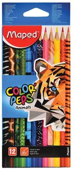 Карандаши цветные MAPED "Color Pep's Animals'", 12 цветов, трехгранные, заточенные, европодвес