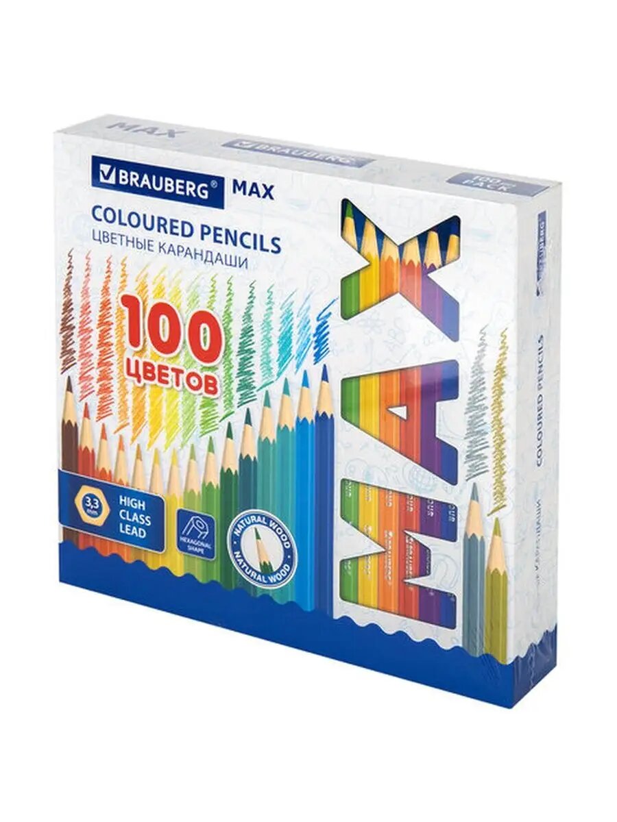 Купить Набор карандашей Brauberg MAX, 100 цветов, шестигранные, деревянные