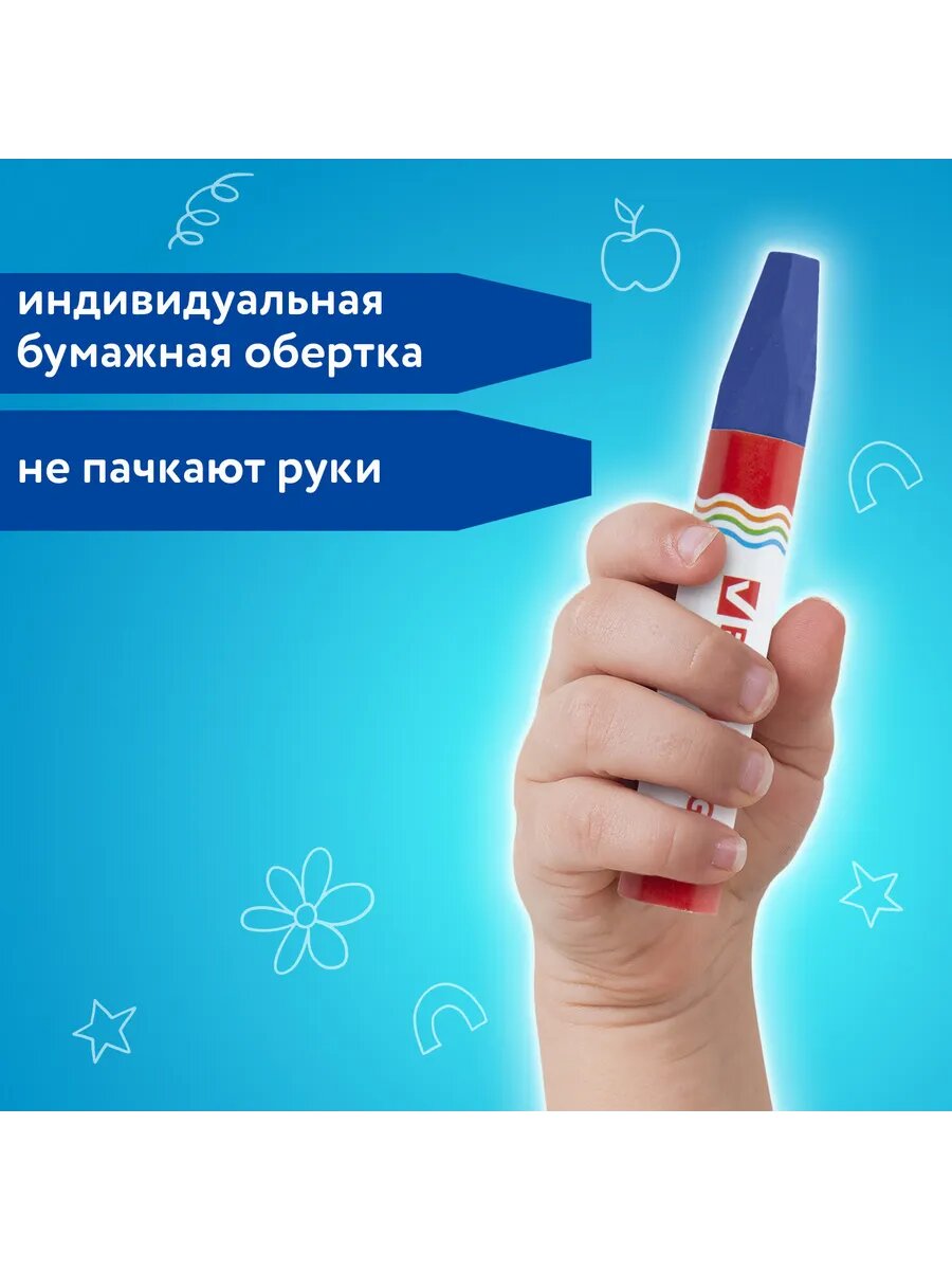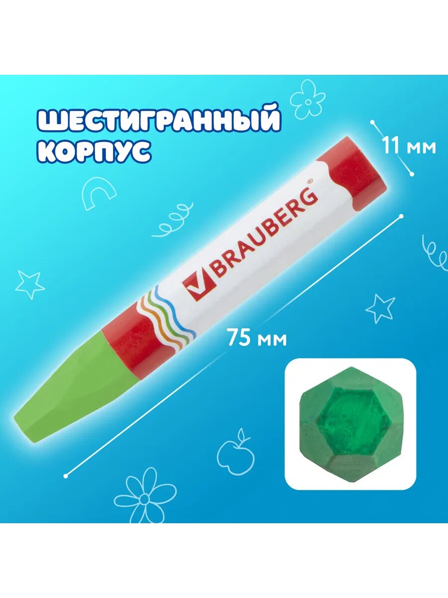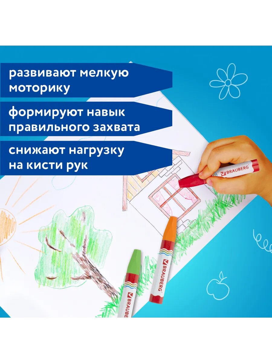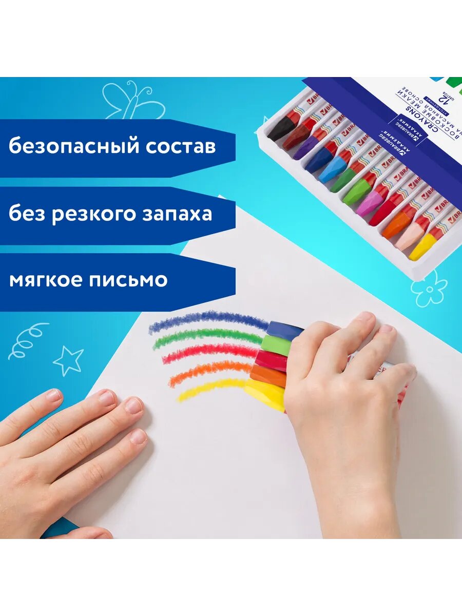 Восковые мелки утолщенные BRAUBERG "академия" набор 12 цветов на масляной основе яркие цвета, 6 шт