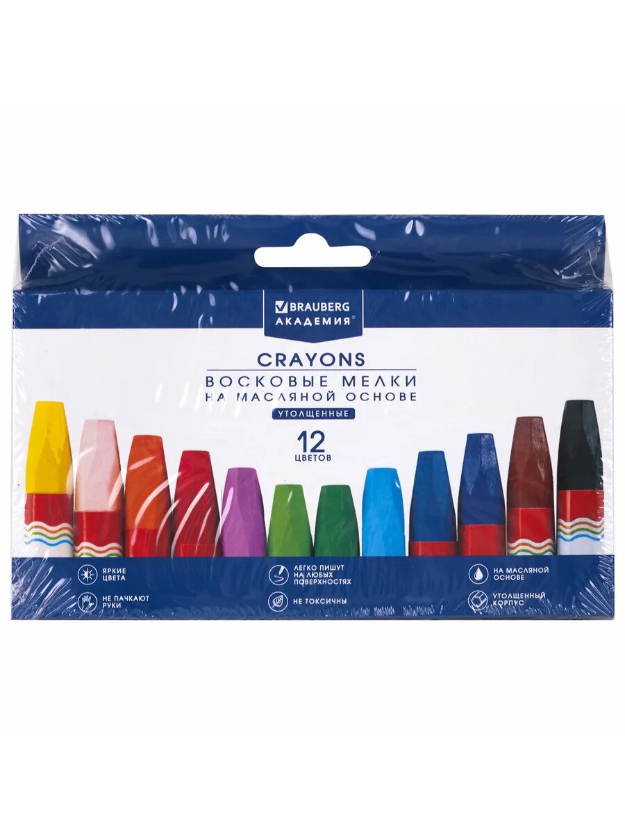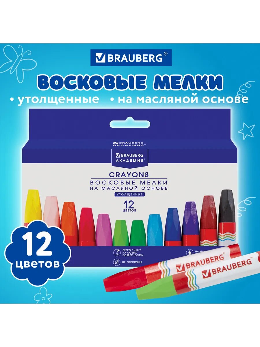 Восковые мелки утолщенные BRAUBERG "академия" набор 12 цветов на масляной основе яркие цвета 227295 1 шт