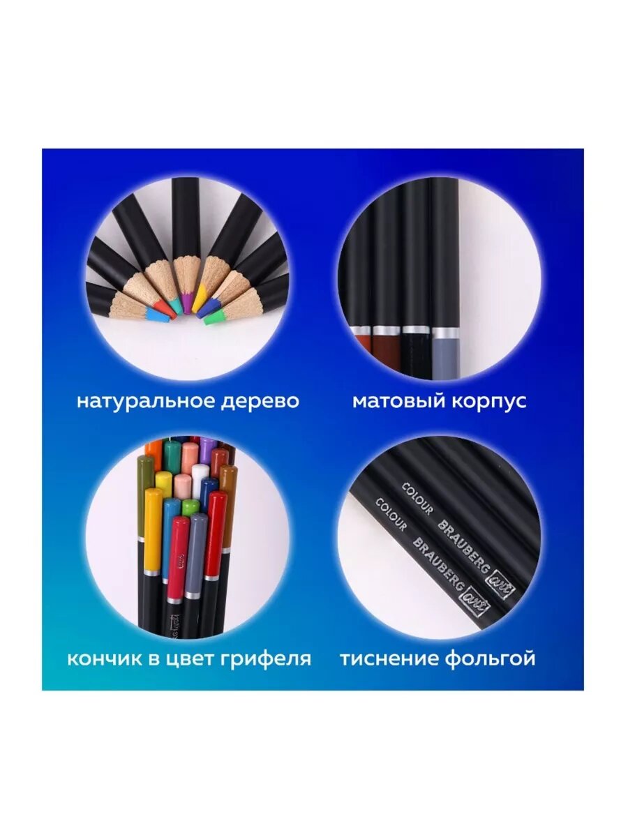 Карандаши художественные цветные Brauberg ART Classic, 24 цвета, Мягкий грифель 3,3 мм, 181537 Braub .