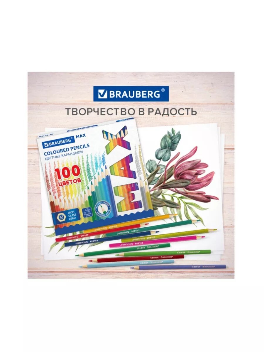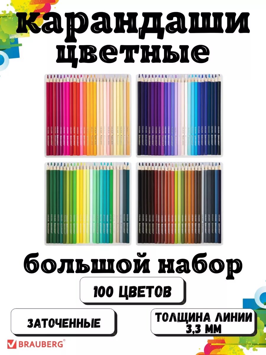 Комплект 100 шт, Карандаши художественные цветные BRAUBERG ART CLASSIC, 12 цветов, мягкий грифель 3.3 мм, 181536