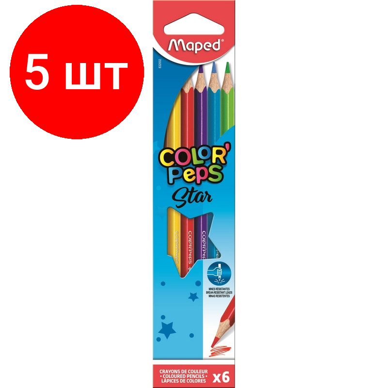 Купить Комплект 5 наб, Карандаши цветные Maped COLOR'PEPS STAR, трехгранные, дерево,6 цв/наб,832002
