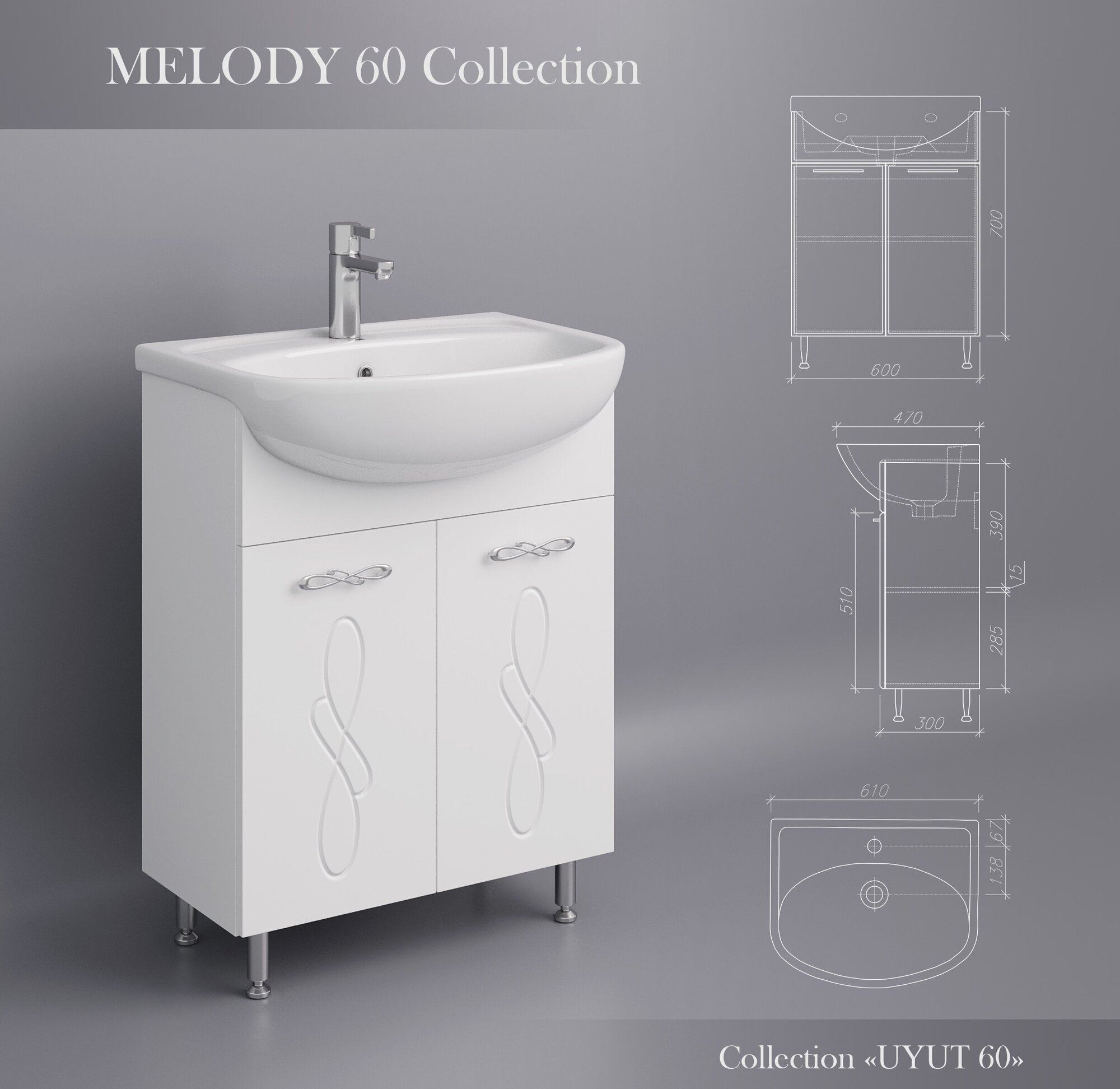 Тумба "Мелодия 60" для ванной комнаты под умывальник "Уют 600" (без умывальника) интересное: