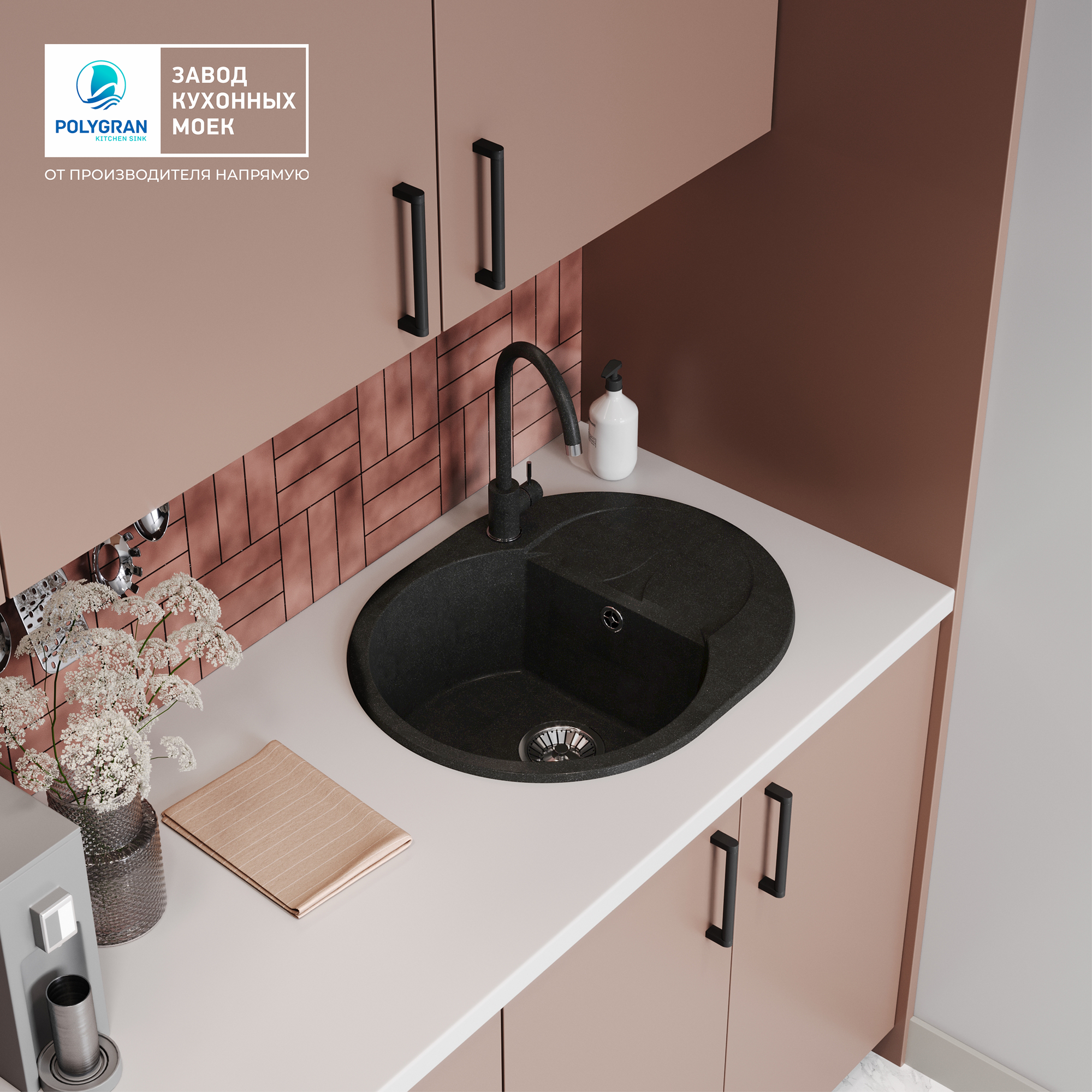 СохранитьМойка для кухни каменная POLYGRAN ATOL-620, черная, врезная, круглая, с крылом (№316 Космос) интересное: