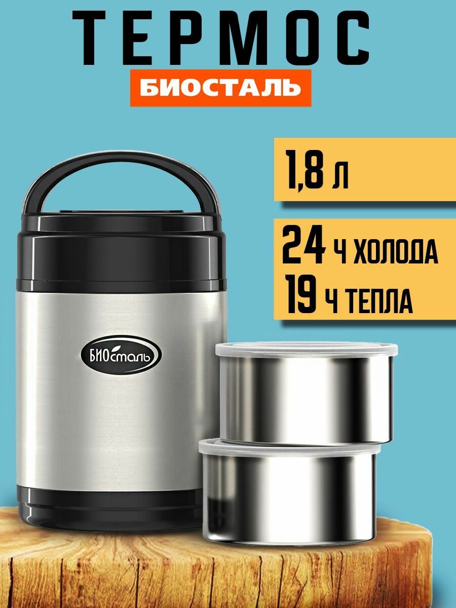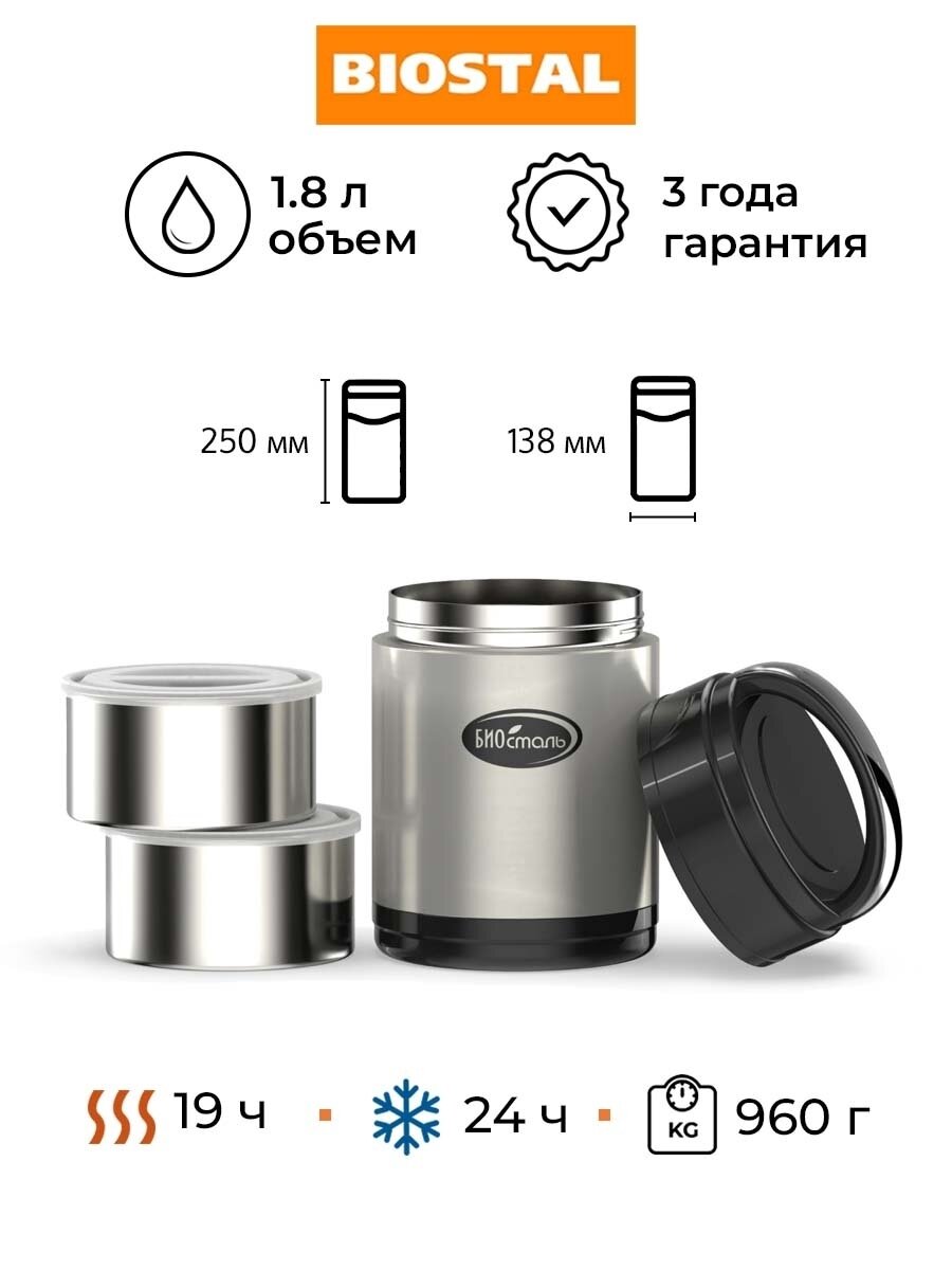 Термос Биосталь Biostal для еды с 2-мя метал. контейнерами, 1,8 л интересное: