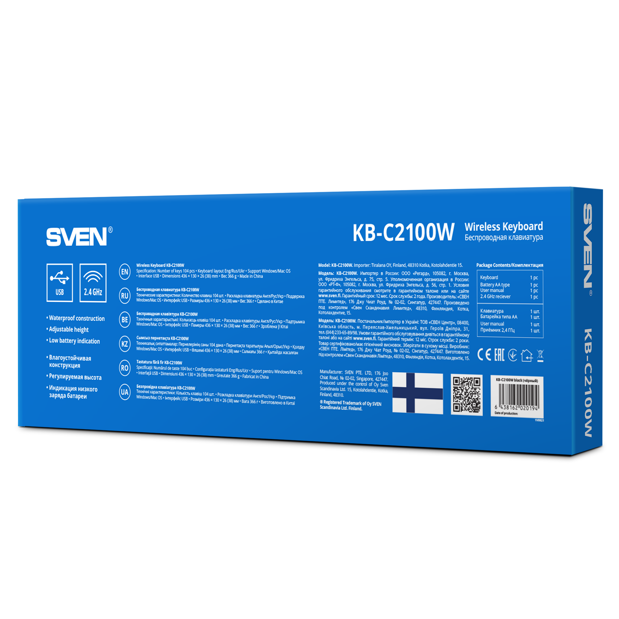 Клавиатура Sven KB-C2100W, мембранная, беспроводная, USB, черный (SV-020194)