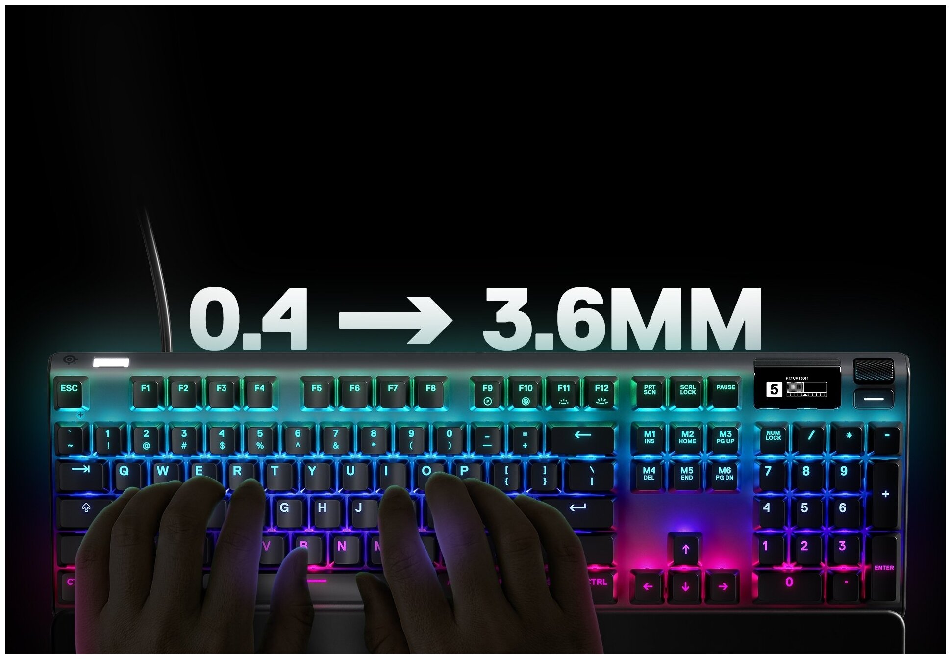 Клавиатура Steelseries Apex Pro Ru (64626) черный, механическая c подставкой для запястий, USB-хаб,