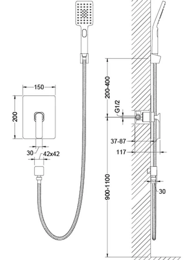 | Комплектация | смеситель - 1 шт. / декоративная накладка - 1 шт. / ручка смесителя - 1 шт. / ключ шестигранный - 1 шт. / ручная лейка (2-х режимная / пластик) - 1 шт. / шланг душа 1,5 м (латунь) - 1 шт. / отвод из стены - 1 шт. / держатель лейки (пластик) - 1 шт. |