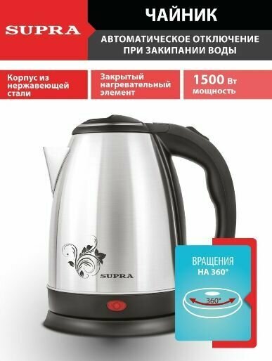 Чайник электрический SUPRA KES-1802S 1,8 л, 1500 Вт, серебристый/черный