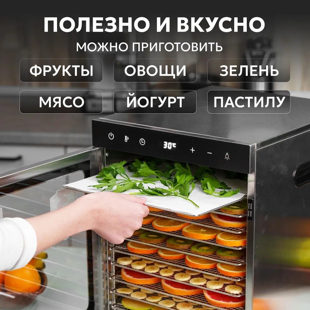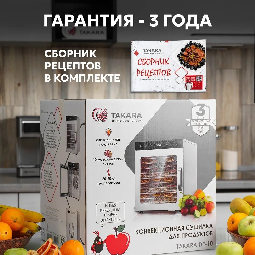 Сушилка для овощей и фруктов TAKARA DF-10 в двухслойном корпусе из нержавеющей стали, Гарантия до 3 лет интересное: