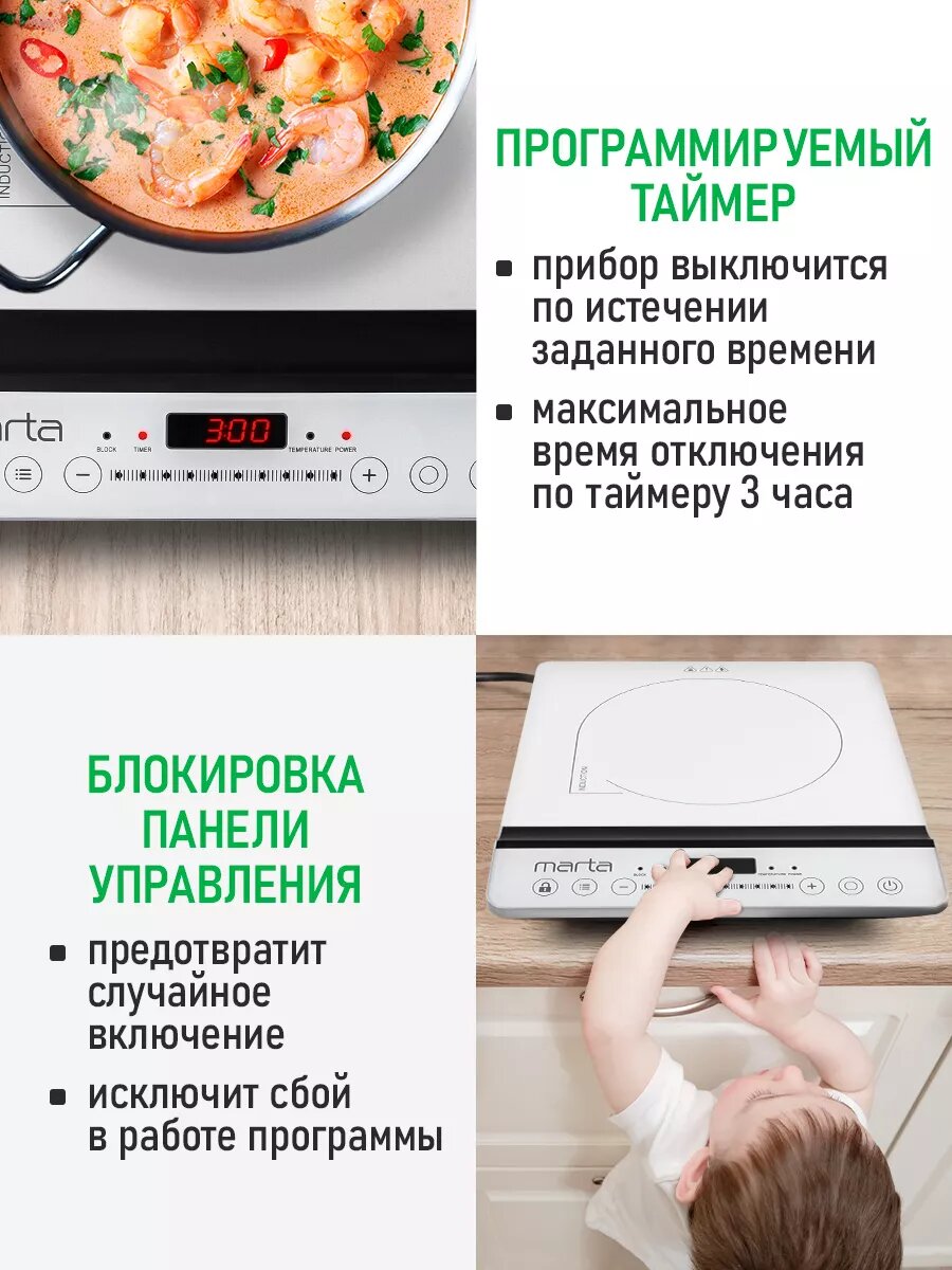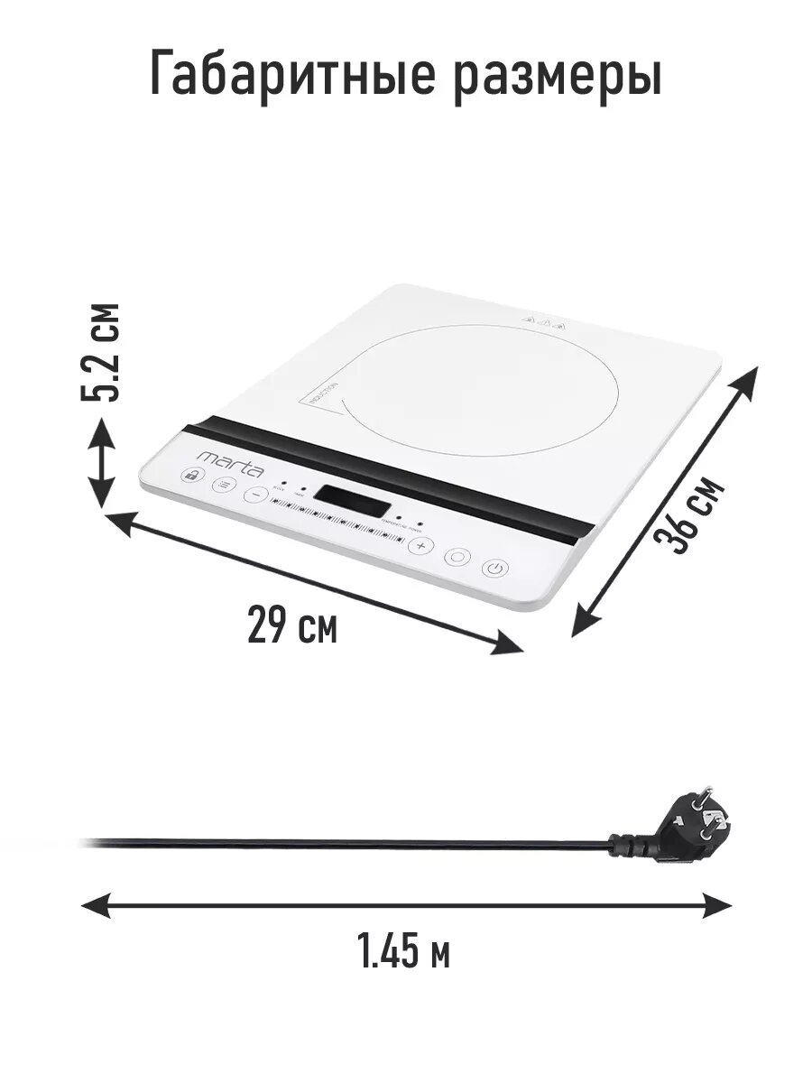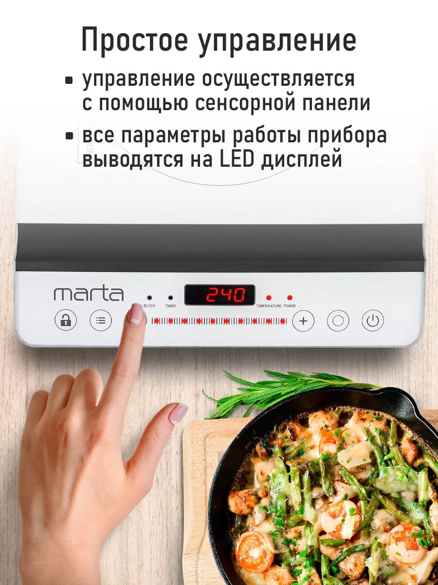 Плита индукционная электрическая MARTA MT-HP4222B безимпульсная белый жемчуг интересное: