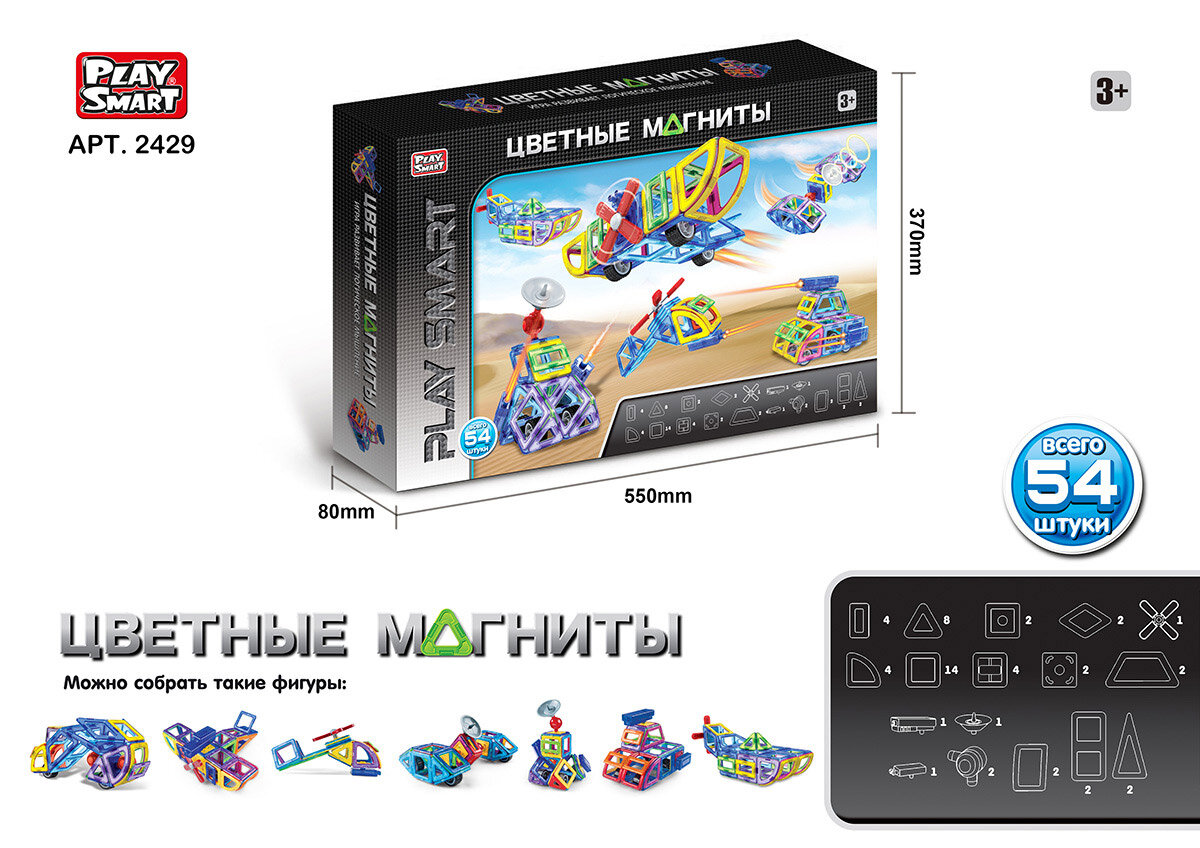 Конструктор магнитный "Цветные магниты" 54 детали Play smart 2429 интересное: