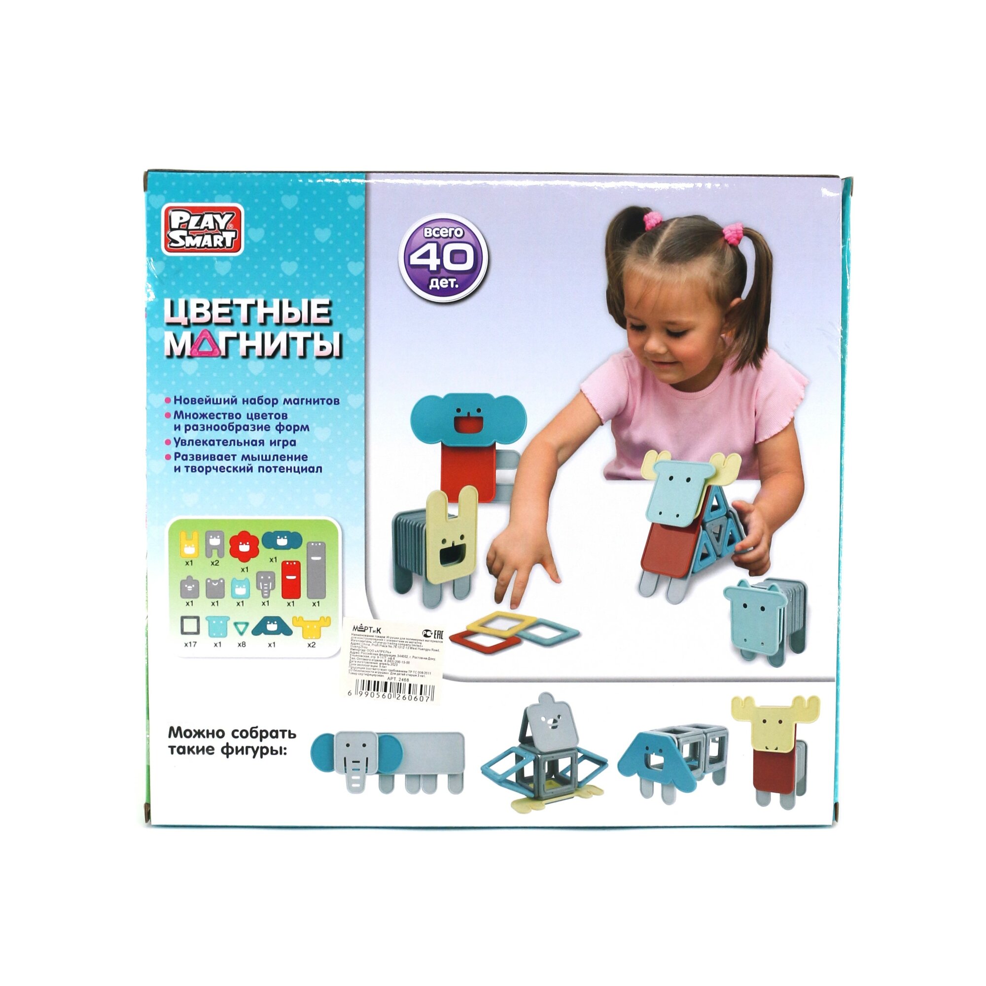 Купить Конструктор магнитный для детей "Зверюшки" Play Smart 40 деталей 2468