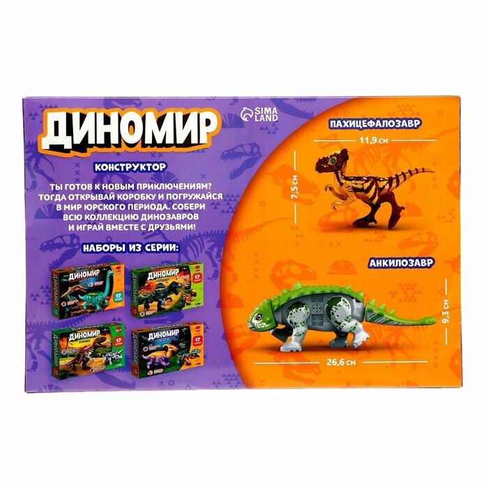 Купить Конструктор «Диномир», пахицефалозавр и анкилозавр, звуковые эффекты, 22 детали