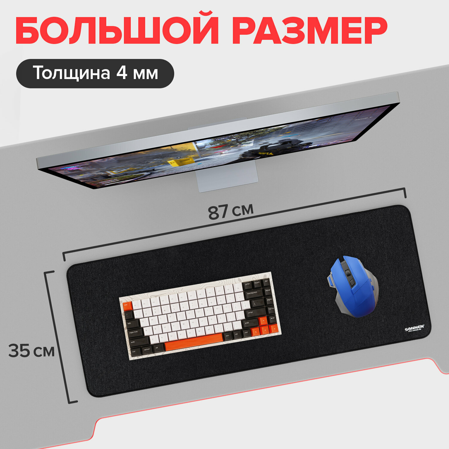 Коврик для мыши и клавиатуры Sonnen большой Wide Range, резина, ткань, 870х350х4 мм, черный 513315