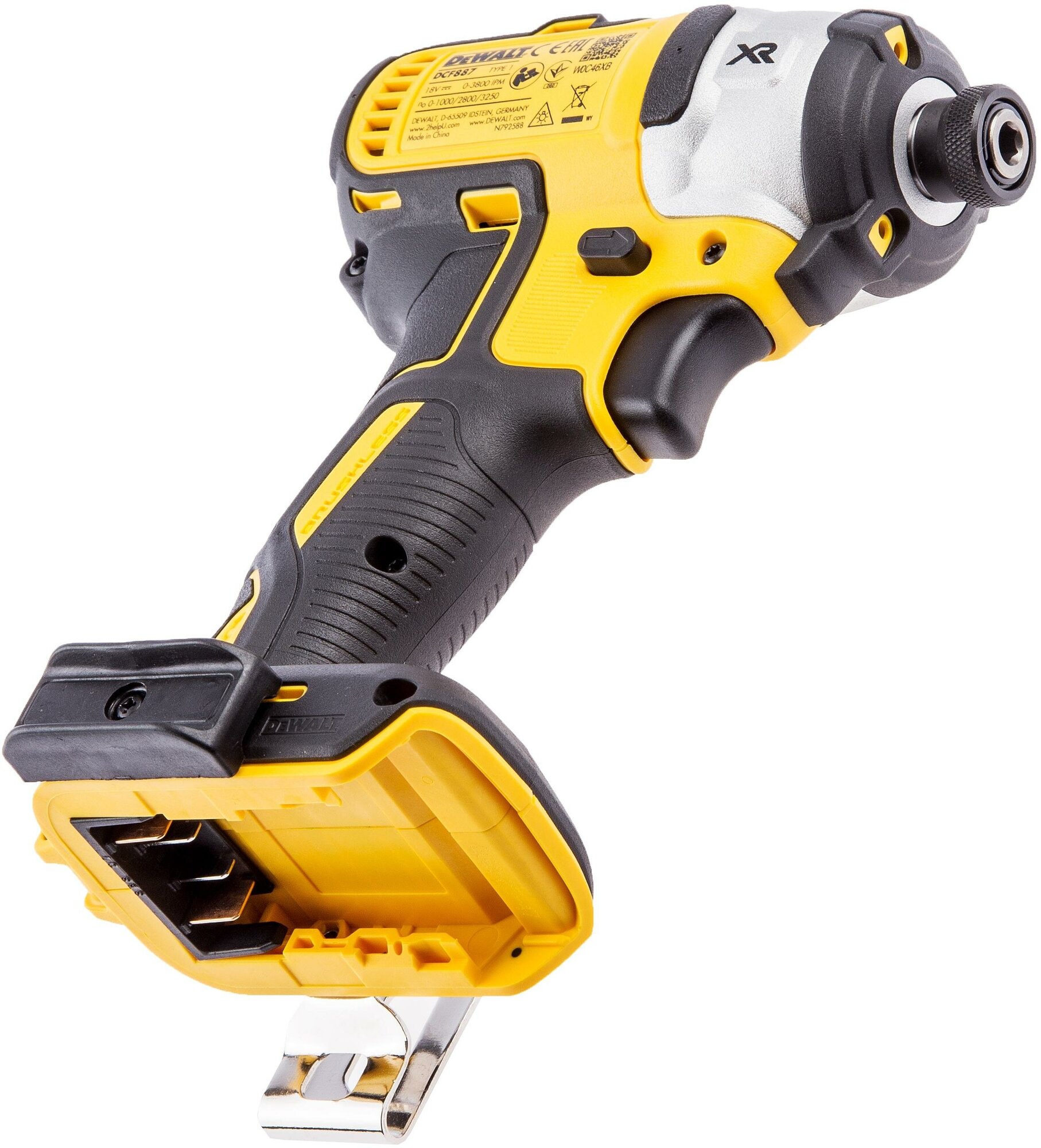 Аккумуляторный импульсный шуруповерт DEWALT DCF887N-XJ XR 400 Вт,205 Нм,0-3250 об./мин.,0-3800 уд./мин., тройная LED подсветка