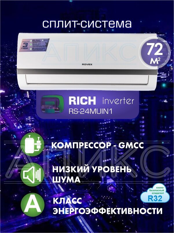 Сплит-система инвертер ROVEX RICH RS-24MUIN1 кондиционер бытовой для большого помещения, 72 м2