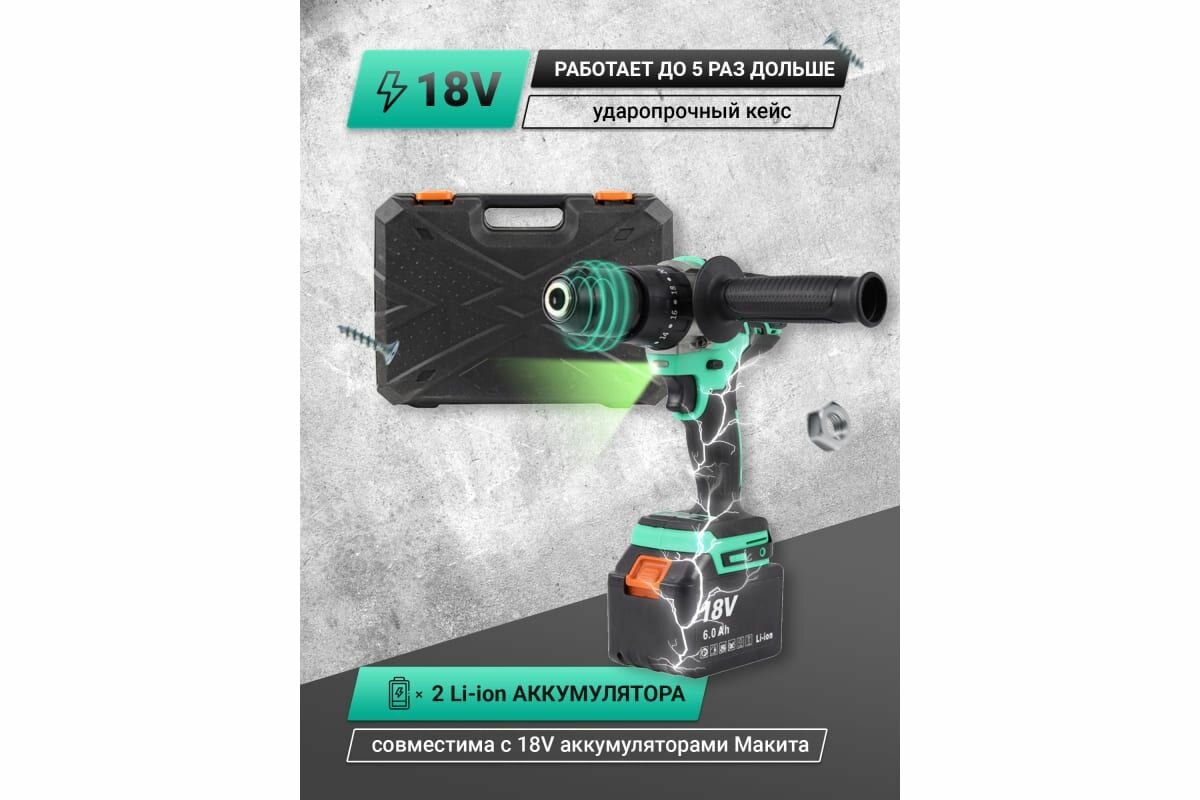 СохранитьДрель-шуруповерт аккумуляторная Zitrek Green Impact 18V, ударная, 18В, 2x6Ач (063-4046) интересное: