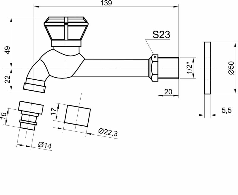 Сливной кран BRONZE DE LUXE длинный (насадка "под шланг") (21594/2)