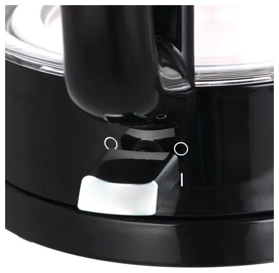 Крышка без механизма, открывается вручную, что вероятней всего увеличит срок службы. Стекло по всей плоскости контакта с водой. Низкая цена. Такой чайник вполне мог стоить и дороже. |