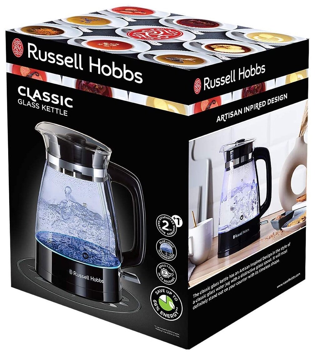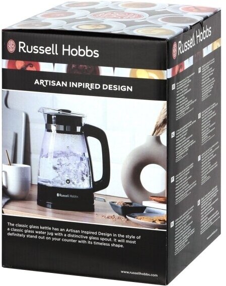 Чайник электрический стеклянный с подсветкой Russell Hobbs 26080, черный