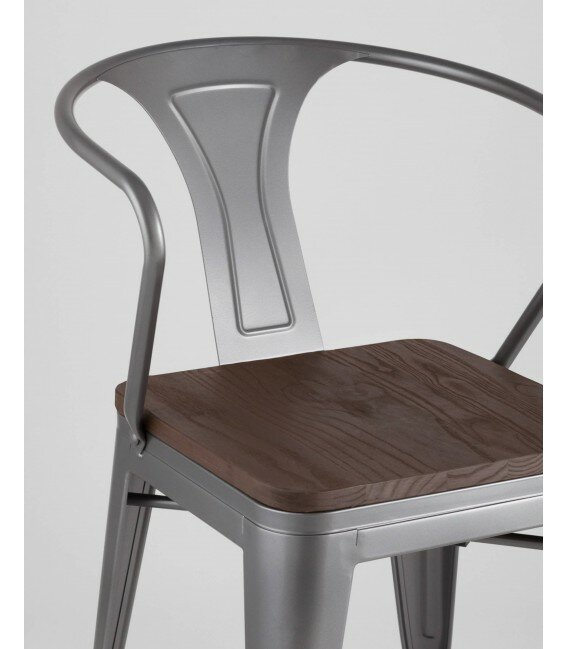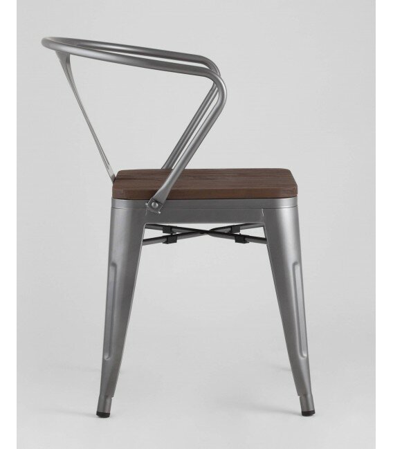 Стул TOLIX ARM WOOD серебристый матовый + темное дерево