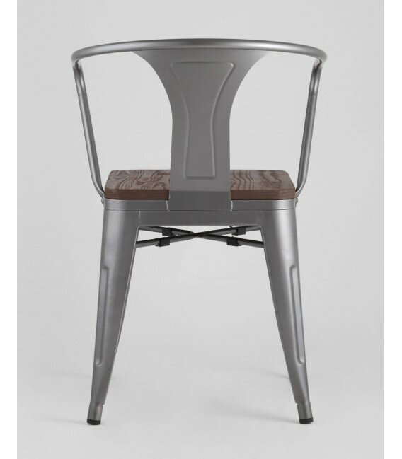Стул TOLIX ARM WOOD серебристый матовый + темное дерево(комплект 2 шт)