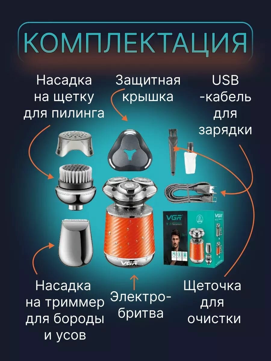 СохранитьЭлектробритва мужская 3в1 V-391 интересное: