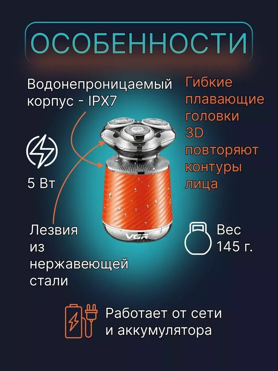 Электробритва мужская VGR V-325/Электрическая бритва для мужчин