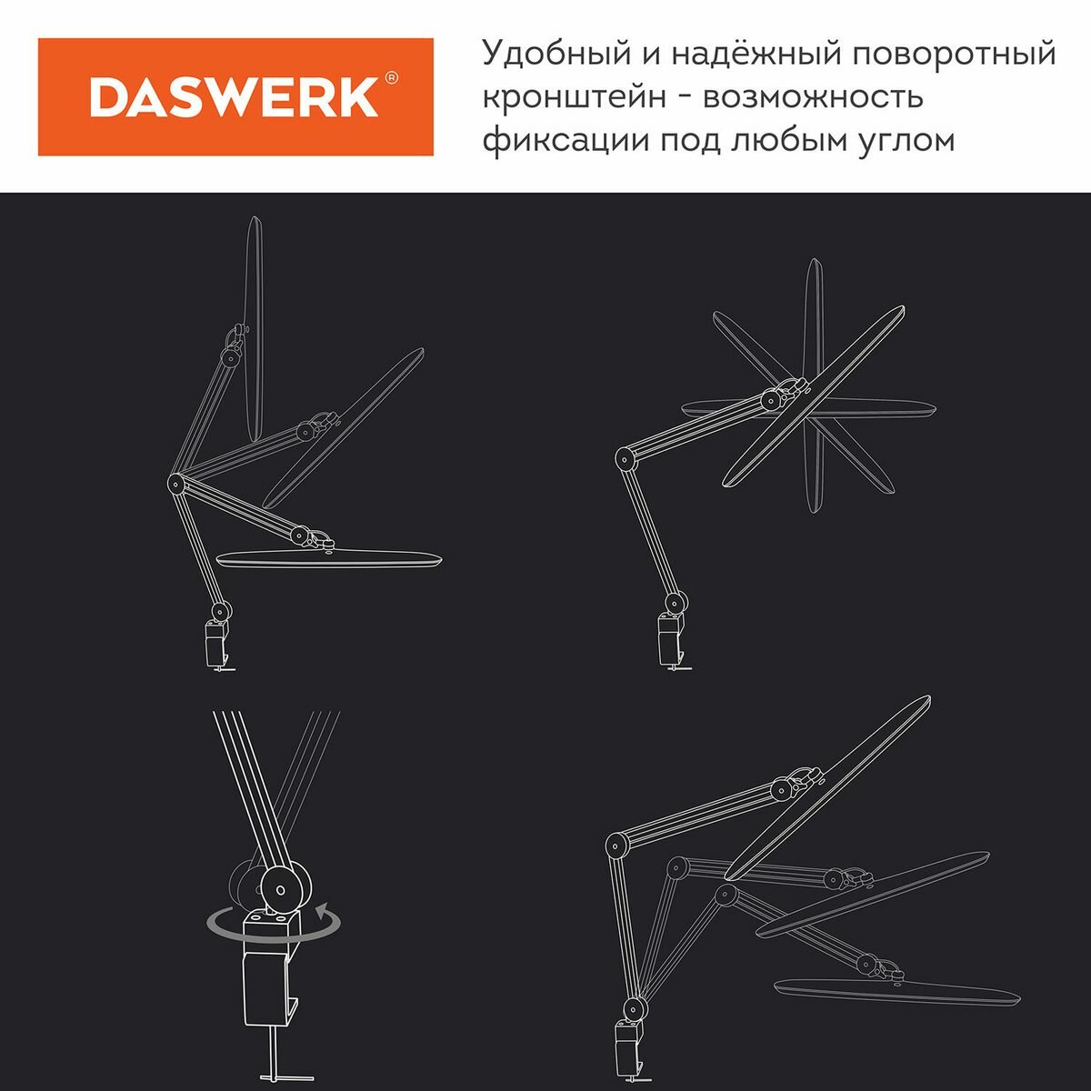 Лампа настольная DASWERK бестеневая, 24 Вт, 117 светодиодов, 4 режима яркости, шнур 1,5 м