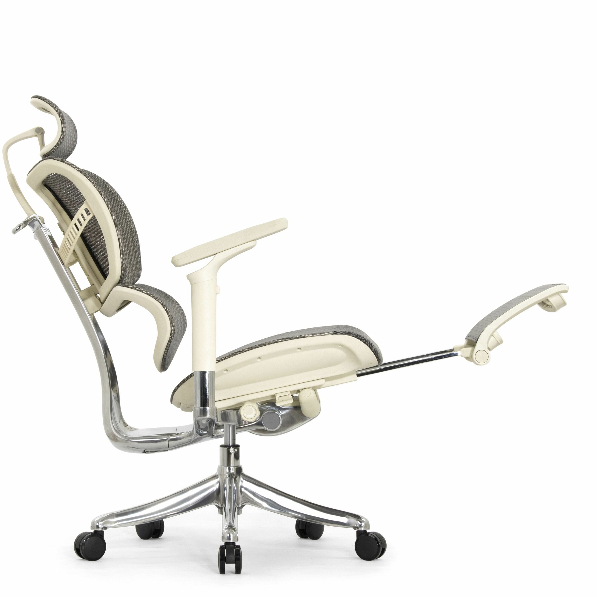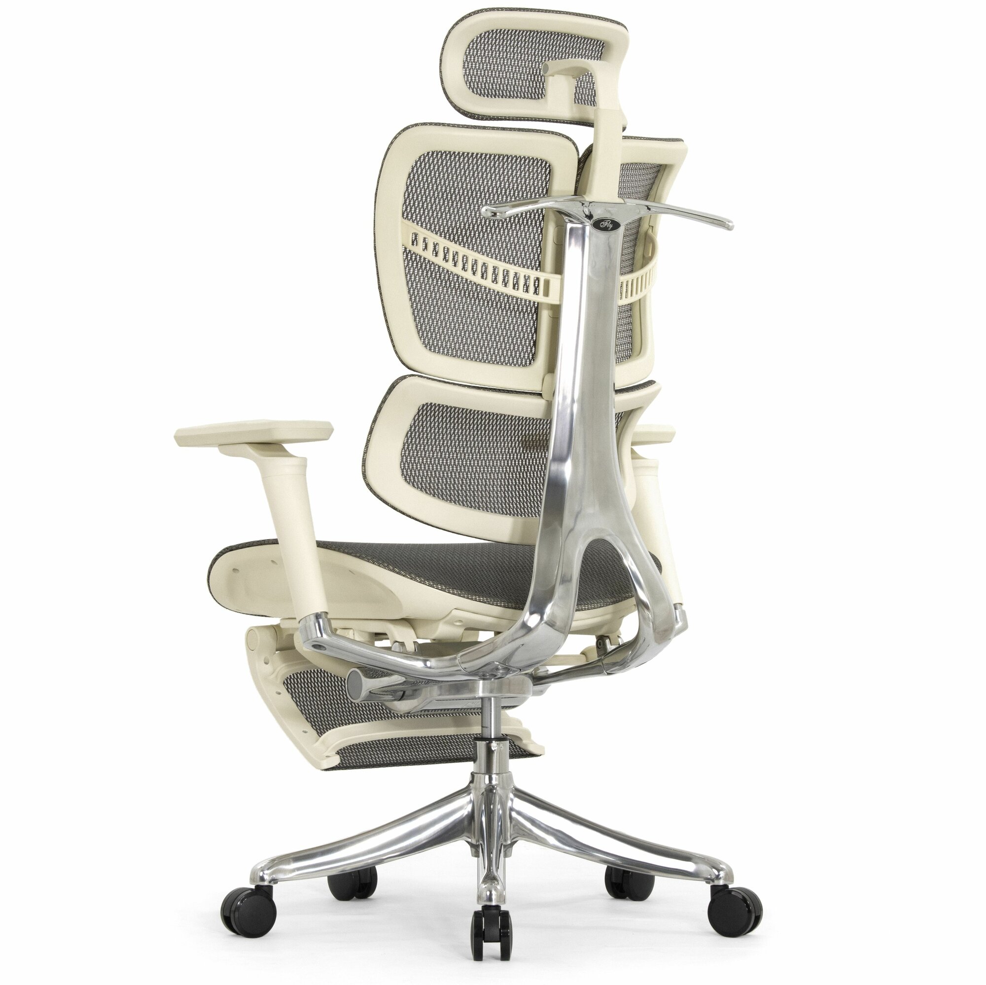Купить Эргономичное кресло руководителя Falto Expert 2 FLY с подножкой, сетка серая / каркас белая скала / хром