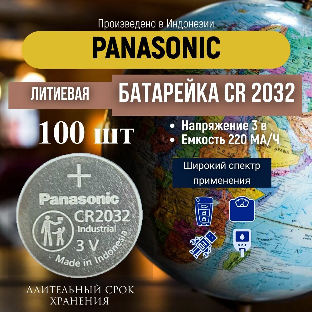 Купить Элемент питания CR2032 Батарейка литиевая Panasonic, 100 шт