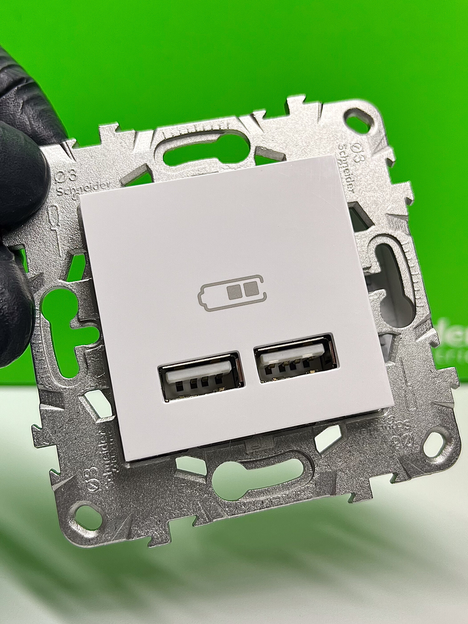 Розетка USB SCHNEIDER ELECTRIC UNICA NEW USB, 2-местная, тип А+А, 5 В/2100 мА, Белый, NU541818