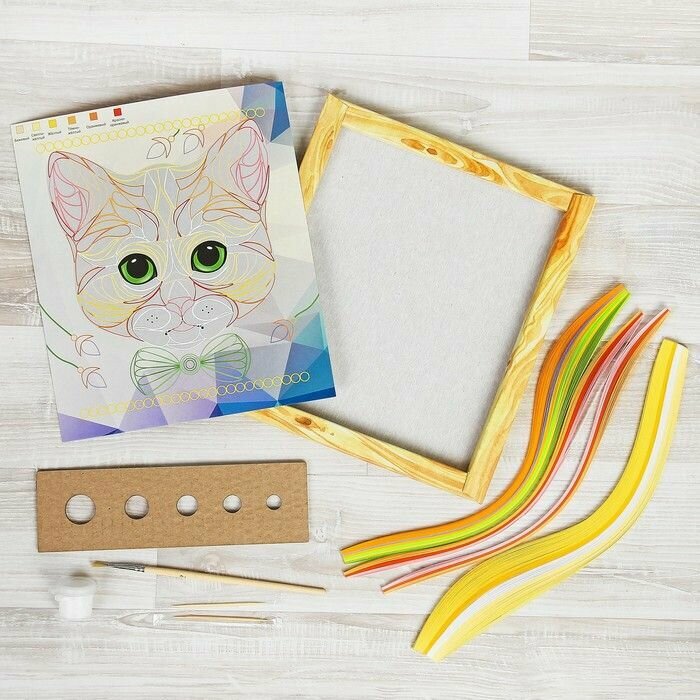 LORI Набор для квиллинга Рыжий котенок Квл-026 желтый/зеленый/серый 1 шт.