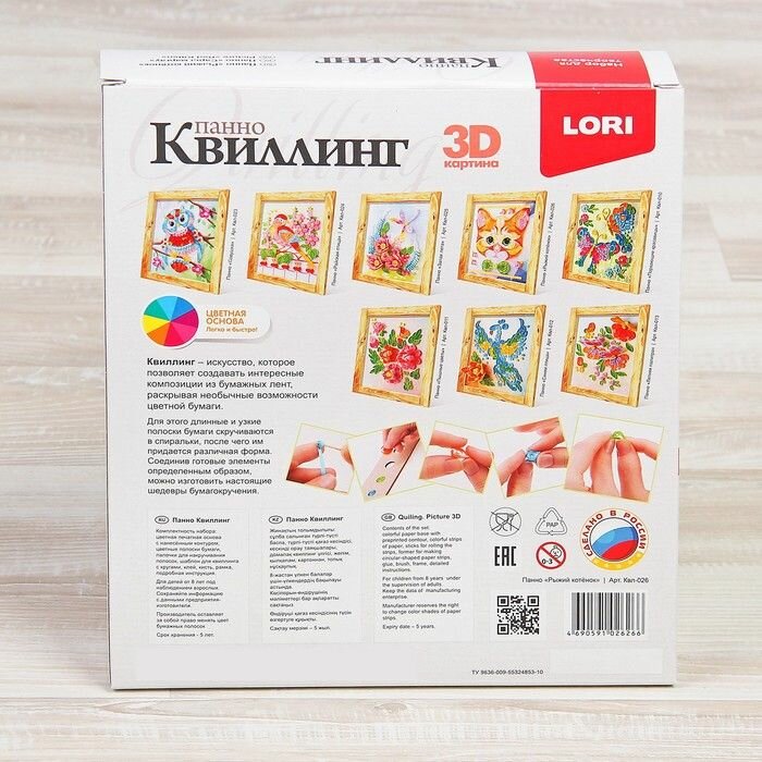 Квиллинг-панно Lori 3D "Рыжий котенок", с рамкой, картонная коробка