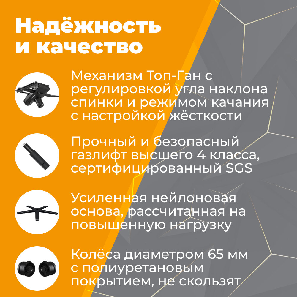 | Конструктивные особенности | газлифт / колеса (ролики) / подголовник / подлокотники / поясничный упор |
