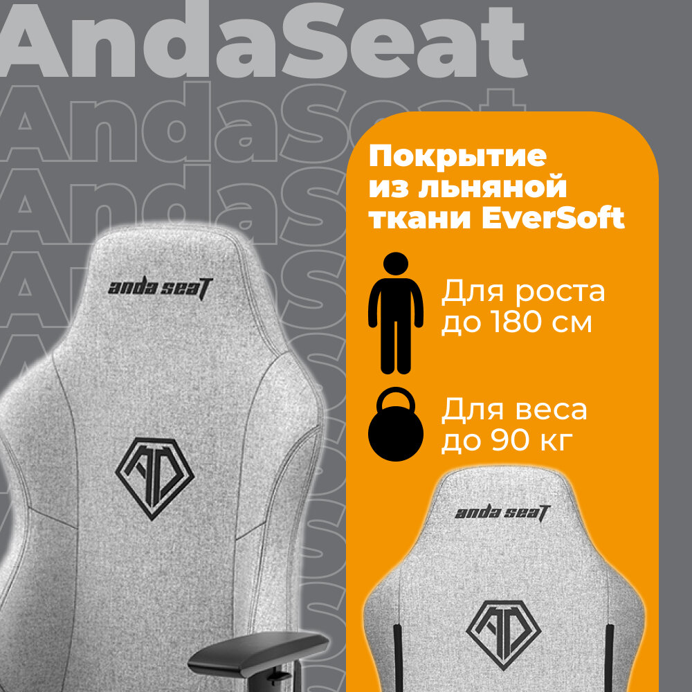 Компьютерное кресло AndaSeat Phantom 3 L игровое, обивка: тканевая, серое