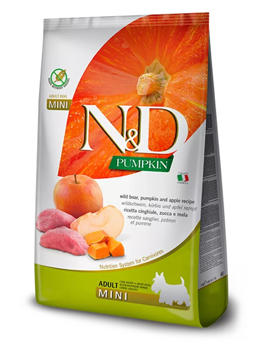 Фармина 33291 N&D PUMPKIN Adult Mini корм беззерновой д/собак мелких пород с мясом Кабана, тыквой и яблоком 2,5кг